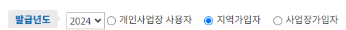 발급년도 및 가입자 구분을 선택합니다.