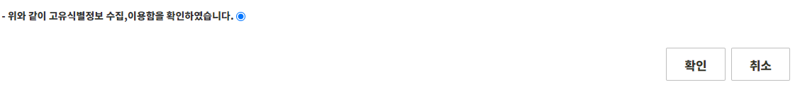 수집, 이용에 동의 후 확인을 클릭합니다.