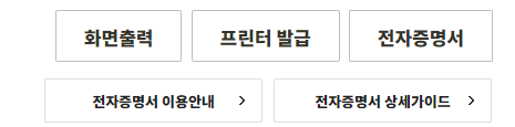 금액 확인 후 화면 출력, 프린터 발급, 전자증명서 등으로 발급하시면 됩니다.