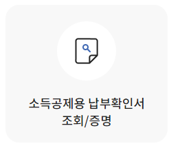 소득공제용 납부확인서 조회/증명을 클릭합니다.