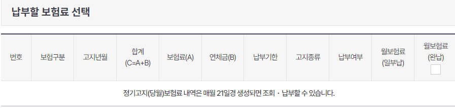납부할 보험료를 선택하시고 납부를 진행하시면 됩니다.